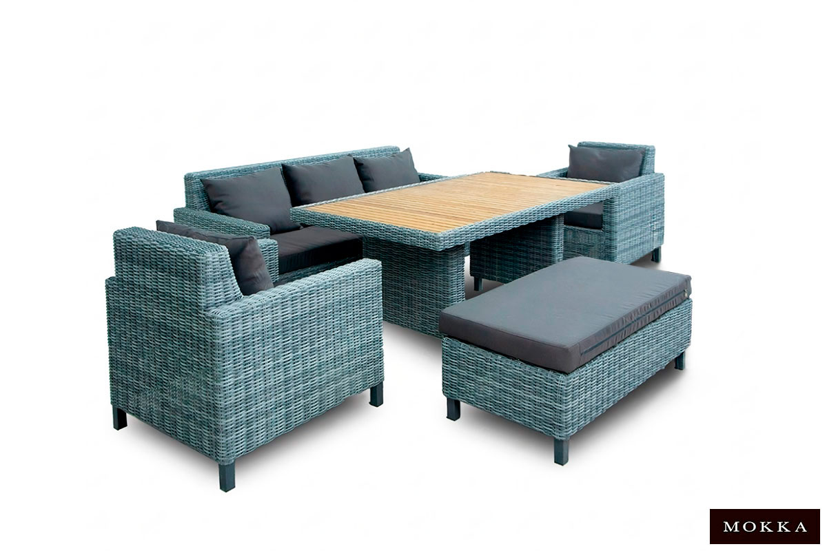 Материал Polyrattan, полиэстр, лиственница, FlexyFoam, сталь