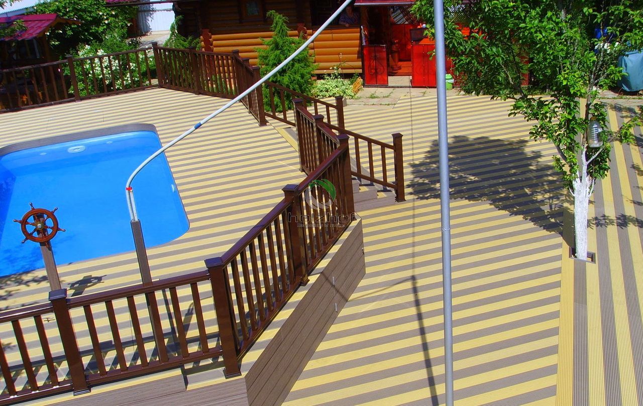 Чтобы вода в бассейне была прохладной и чистой, за этим надо следить. Чтобы террасное покрытие не пришлось менять каждый год, нужно подобрать качественную террасную доску! Подобрав качественное покрытие для террасы в загородном доме, поселка Бекасово, Московской области, мы осуществили мечту одной семьи, которая теперь с радостью отдыхает со своими друзьями по выходным дням, купаясь в бассейне и не обращая внимание на мелочи.